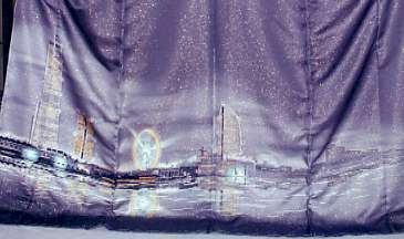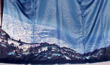 数年前の仕事ですが問屋さんの展示会用です。問屋さんのアイディアを受け私が作業図案を作り染めげた着物です。仮絵羽のため脇が広く縫ってあります。