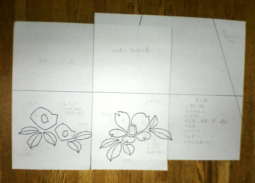 ◆ 純粋な色を染める ◆ 草木染めは不純物も染まるから魅力ある色になる・・・という表現することもあるが、この言い方は微妙な感覚を残す。色素だけ染めるならば化学染料のほうが使いやすく染めやすく長持ちする。絹を草木染めすると確かに不純物も染まってくれる。だが、木綿は結構染まりにくい。そして、不純物も染まりにくい。絹と木綿、同じ草木の色を染めると、染まらない木綿のほうが鮮やかな色の場合もある。これが面白い。 ◆ 草木染めは染色の古典 ◆ 最近思うことで最もフィットする感覚は『草木染めは染色の古典』ということ。昔の染め方の中に原点がある。今は簡略に染めようとし過ぎるのと、人間が勝手に不自然なことを行う。手間を惜しまずに探すことが良いと思う。 ◆ 草木染めの基本とは? ◆ 草木染めの基本の染め方を質問されることがあります。趣味として楽しむ場合は色がつけば良い状態から、一枚の布=例えば45cm四方のハンカチをムラ無く染め上げることができれば良いといえます。模様をつけて楽しむ段階になると、どうしてもムラが気になりますし、染めた布をプレゼントする場合でも美しく染まっていたほうが自信をもって差し出すことができます。趣味の段階から、更に一歩進むには、もっと美しく、長持ちする方法で染めることを勧めています。 ◆ 図案の重要性 ◆ 染色一般、草木染めで模様をつける場合は予め図案を制作し工程の順番を確認し色彩計画を行います。目的とする模様を染め上げるためには偶然という形では出来ませんし、やり直しを出来ないのが布の上の染色です。 | ||||||
