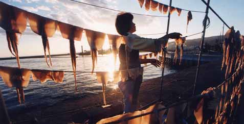 最近注目を浴びている能登の名産品に、魚醤油(うおじょうゆ)があります。輪島市、門前町、富来町、珠洲市、内浦町、能都町の海と共に暮らした人々が、長い歴史の中で培った奥能登独自の魚醤油は、新鮮なイカ、イワシ、サバ等を原材料として自然熟成させた調味料です。「いしる」「いしり」「よしる」「えしる」とも呼ばれている能登の魚醤油。その味と旨み、香りには1種独特の風味があり、テレビ、雑誌などで取り上げられることも多くなってきました。能登の魚醤油、今何故注目を浴びているのか?その魅力を取材しました。 | ||||