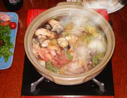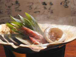 醤(ひしお) 魚醤油・醤油の原型 「醤:ひしお」 醤油の「醤」は「ひしお」と読みます。醤油の原型といわれる「醤」は、今から2000〜3000年も前からあったと言われています。野菜類の塩漬けを「草醤:くさびしお」穀物を塩漬けしたものを「穀醤:こくびしお」、肉類を塩漬けしたものを「肉醤:ししびしお」魚類の塩漬けが「魚醤:うおびしお」。イカの塩辛も魚醤の一つですが、魚醤油は醗酵した液に対する呼び方です。右の写真は料理民宿「さんなみ」の「いしりの貝焼き」 |