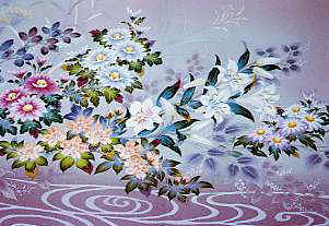 誂え(注文制作)が主体ですが、直接販売ですから手頃な価格で、依頼主の好みの色、好みの模様をお聞きしてオリジナル作品を染め上げます。 |